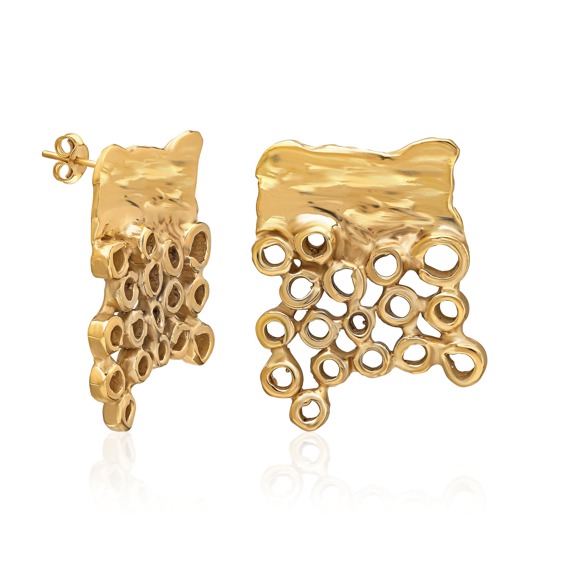 Elevate your elegance with the Arce Earrings, a masterfully crafted accessory that blends artisanal detail with timeless sophistication. Handcrafted from 925 sterling silver and bathed in a rich gold plating, these earrings delight the senses with both their craftsmanship and their enduring glow