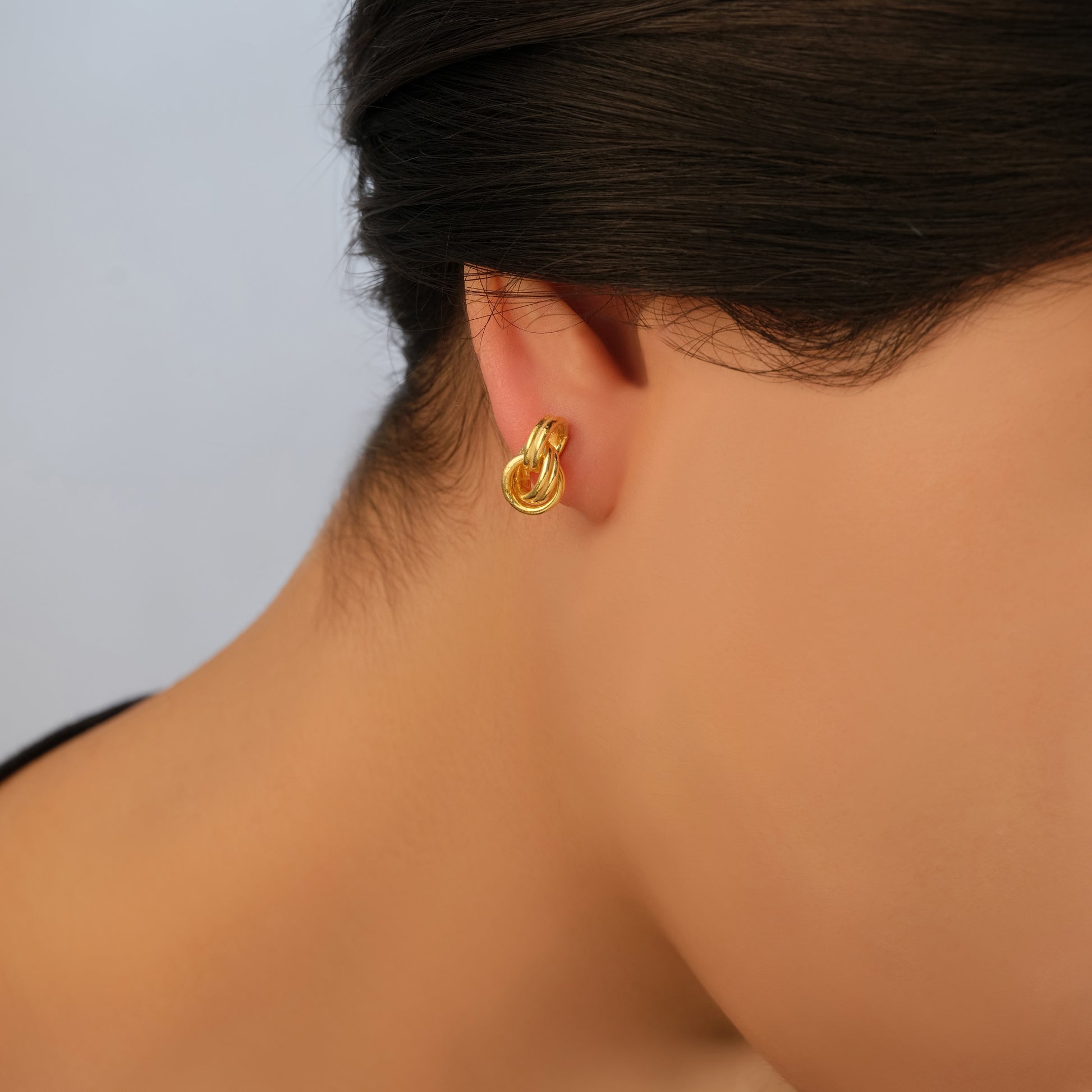 Embrace contemporary elegance with the Avena Interlocked Knot Earrings, crafted from high-quality 925 sterling silver and finished with radiant gold plating. These sculptural studs feature multiple interwoven loops that form a refined, modern knot—symbolizing unity, balance, and effortless sophistication.